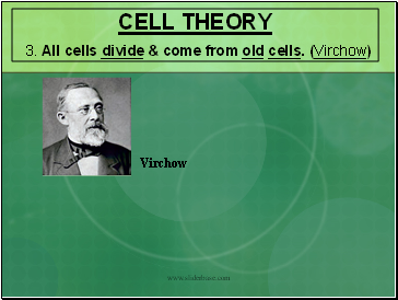 CELL THEORY 3. All cells divide & come from old cells. (Virchow)