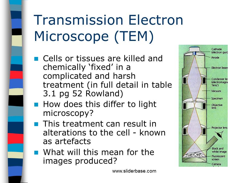Electrons are ‘fired’ from an electron gun at the specimen and onto a fluorescent screen or photographic plate