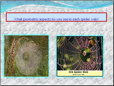 Just think about a spider's web. That is a complicated geometric design. And it is created, usually, in a perfect manner. Even though I majored in Drawing and Painting in college, and even though I am a Graphic Artist at work, I could not draw a design that perfectly, freehand. Yet a spider, using only his body, continually creates geometrically complex advanced shapes that few, if any, human adults could perfectly duplicate, without the aid of machines, or tools such as a pencil and ruler .and even with a pencil and ruler, it would be very complicated, and possibly even impossible, for most people to exactly duplicate. (by Jeff Jenkins)