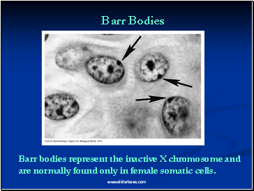 Barr bodies represent the inactive X chromosome and are normally found only in female somatic cells.