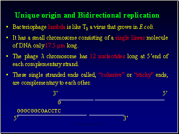 Unique origin and Bidirectional replication