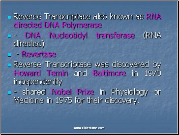 Reverse Transcriptase also known as RNA directed DNA Polymerase