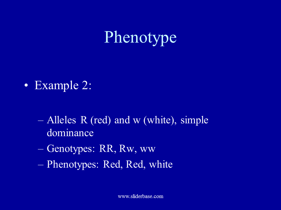 Alleles R (red) and w (white), simple dominance