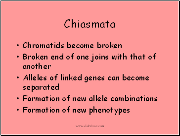 Portions of chromatid exchanged at points called chiasmata