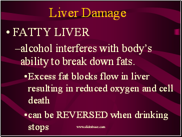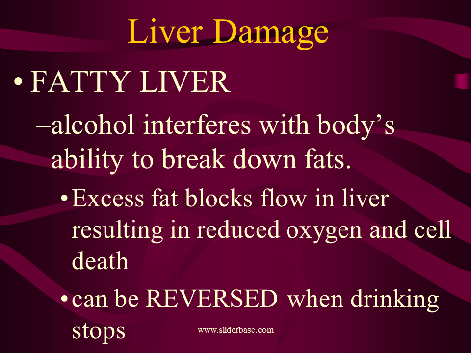 alcohol interferes with body’s ability to break down fats.