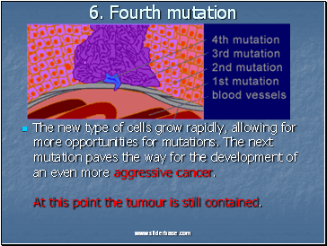 The new type of cells grow rapidly, allowing for more opportunities for mutations. The next mutation paves the way for the development of an even more aggressive cancer. At this point the tumour is still contained.