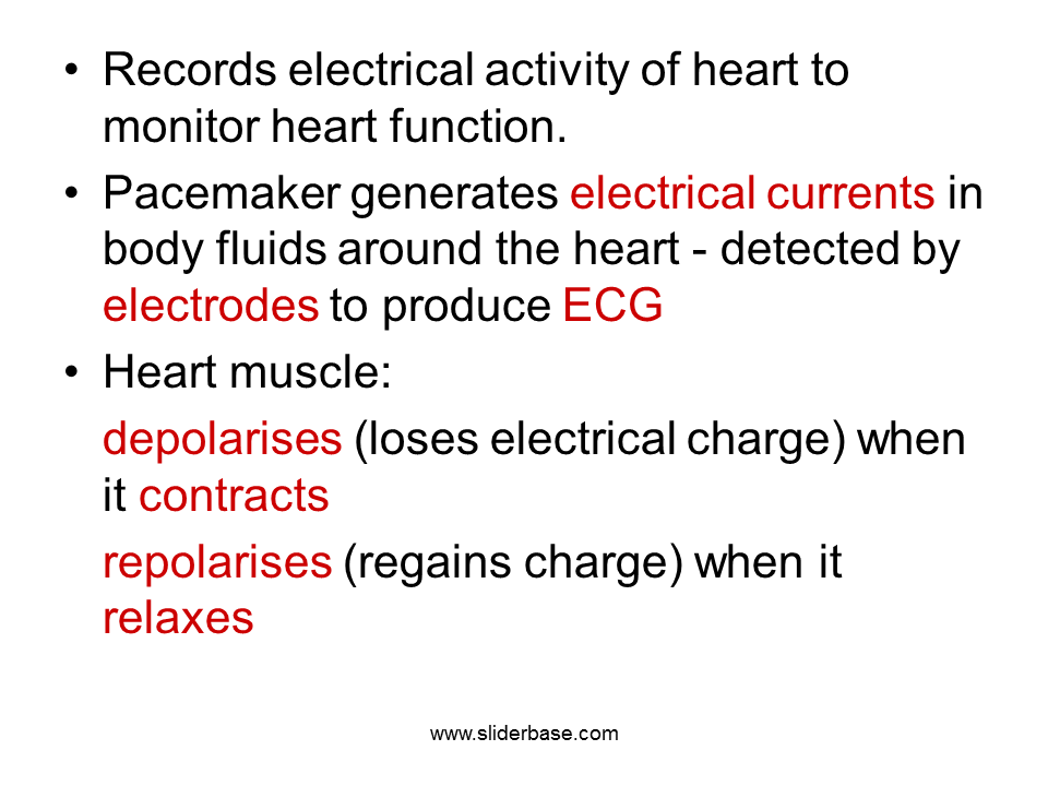 Pacemaker generates electrical currents in body fluids around the heart - detected by electrodes to produce ECG