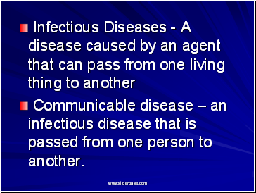 Infectious Diseases - A disease caused by an agent that can pass from one living thing to another