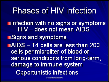 Infection with no signs or symptoms HIV – does not mean AIDS